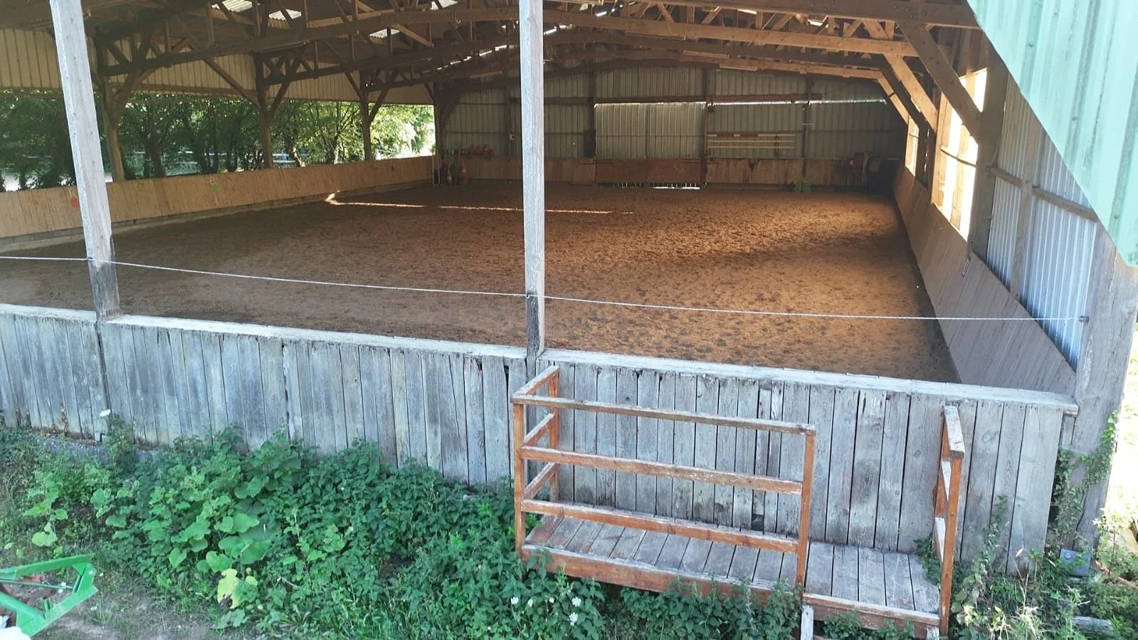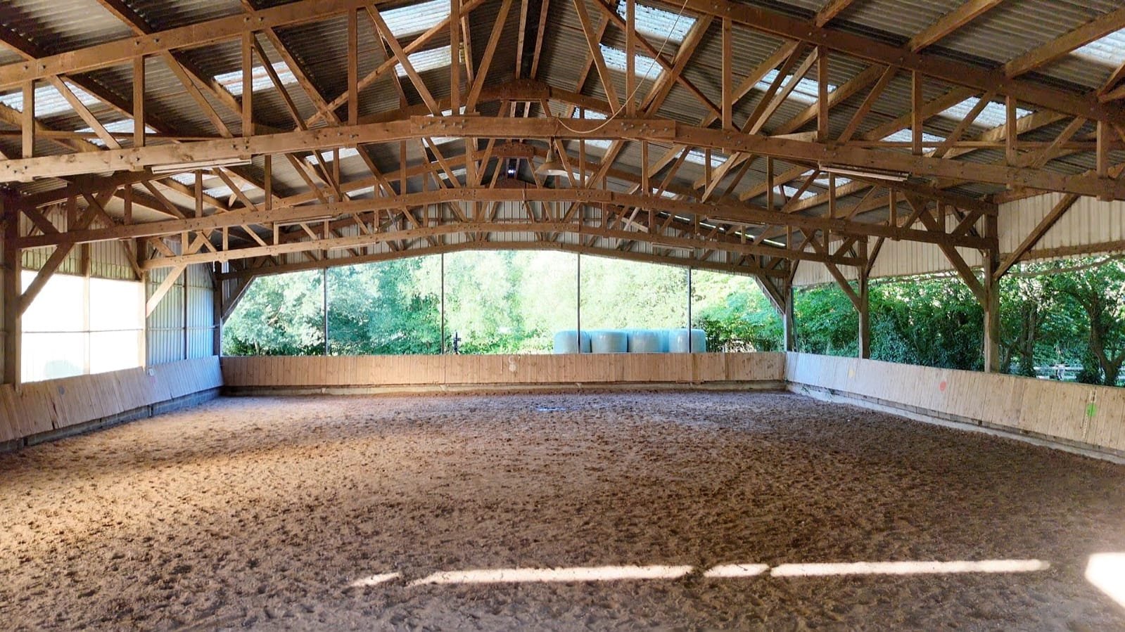 Le sol est composé de sable mélangé à de la fibre, ce qui en fait un sol souple très adapté au travail des chevaux.