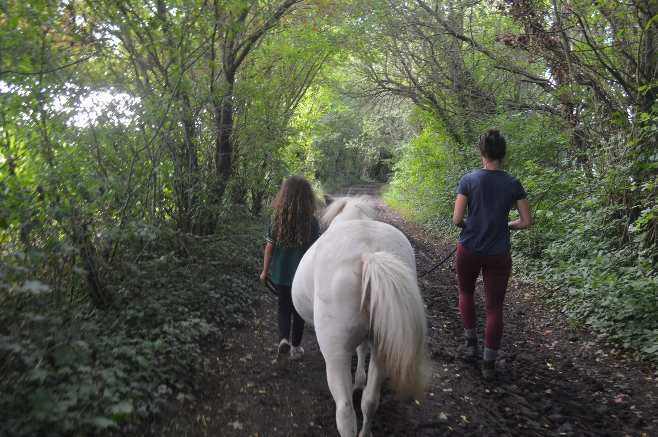 Faites attention de rouler au pas, des poneys ou chevaux peuvent être en balade sur les chemins. Ils sont prioritaires.