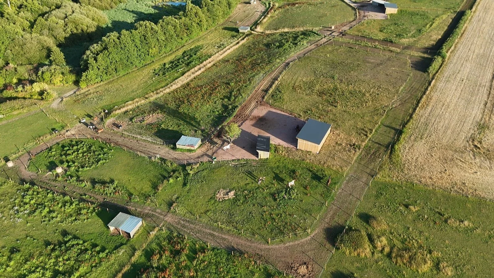Equipiste (circuit en herbe) des juments dont 4 abris sont visibles