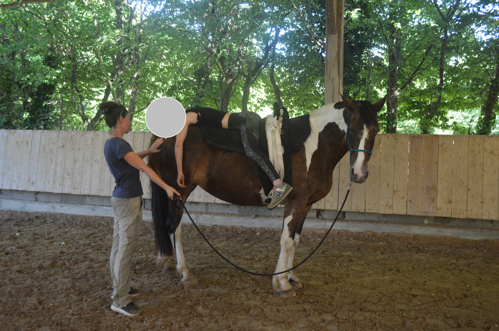 Il ne s’agit par d’apprendre l’équitation, mais d’adapter sa posture corporelle et son tonus général au mouvement de balancier naturel du cheval, sentir la chaleur et les muscles de l’animal bouger sous son corps, chercher et trouver un nouvel équilibre, changer de point de vue en changeant d’horizon visuel, accorder le rythme de sa respiration à celui du cheval.